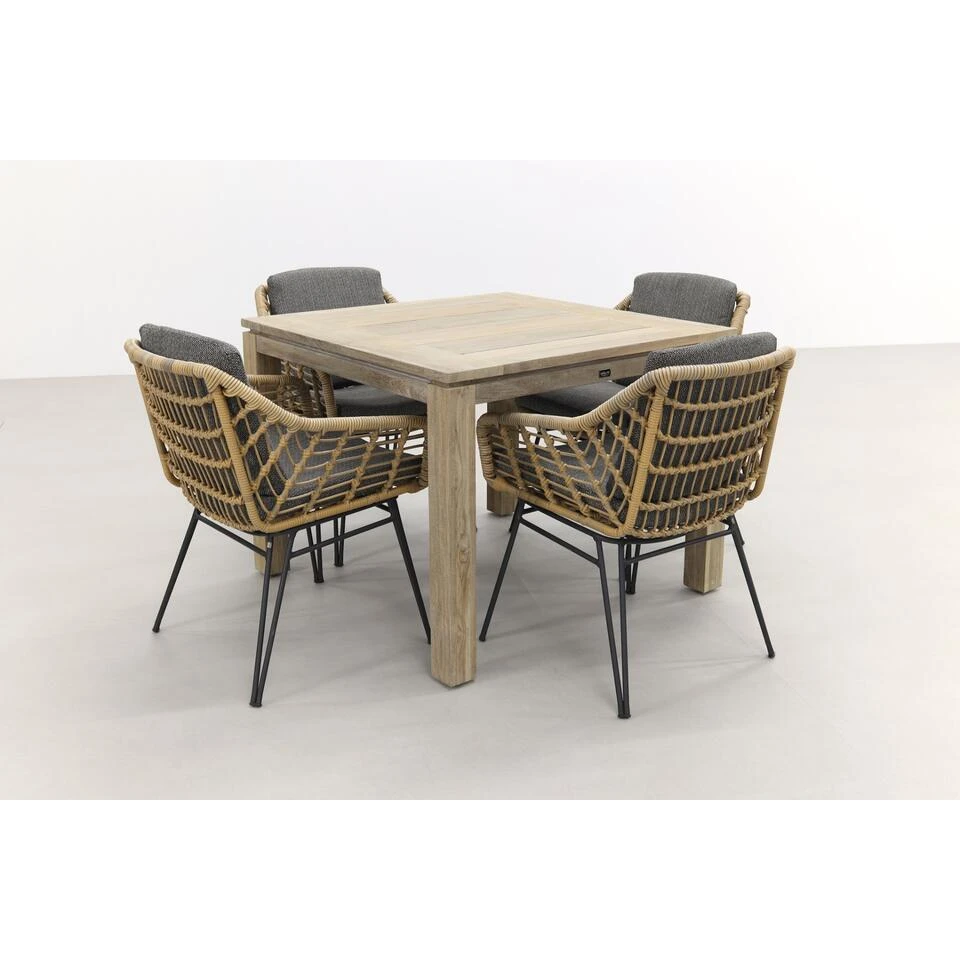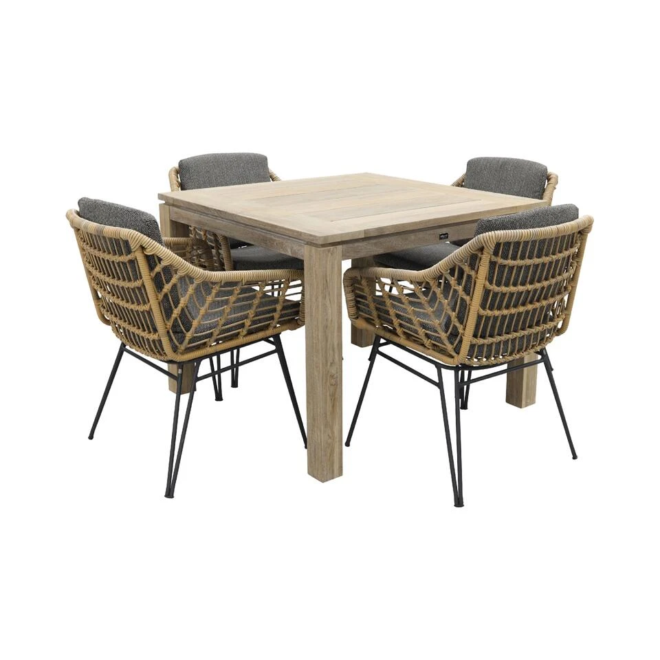 Heb jij een knusse tuin en wil jij wil graag een tuinset voor 4 personen? Dan is deze Rome/Cottage combinatie de juiste voor jou! De Cottage tuinstoelen van 4 Seasons hebben een knusse uitstraling met een retro tintje. Dit komt voor een deel door de warme kleur van het gebruikte wicker van deze stoel. Combineer dit met de grijze Rome tuintafel en je hebt een perfecte combinatie. Het teakhout van de tafel is behandeld met een grey was, zodat het een stoere look krijgt. Deze tuinset ziet er niet alleen leuk uit, hij zit ook nog eens super lekker! De Cottage stoelen worden standaard geleverd met hele comfortabele kussens. Zo houdt iedereen het de hele avond wel vol op deze stoelen. Wil jij deze mooie tuinset ook in jouw tuin of balken hebben staan? Bestel dan snel online!