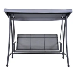 Voor de zit- en rugleuning van de bank is gebruik gemaakt van een textilene all-weather doek. Om deze stevige schommel bank net even iets gezelliger te maken is er een dakje toegevoegd van een mosgroen polyester doek. Het dakje kun je iets kantelen, waardoor je zelf de gewenste stand kunt bepalen. Kortom, voor het ultieme relaxen, ga je lekker schommelen in een schommelbank in de tuin.