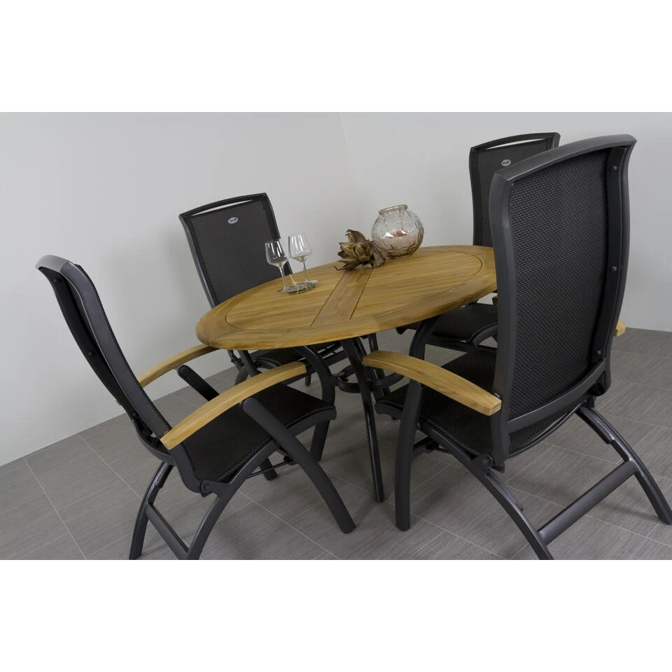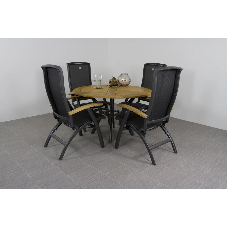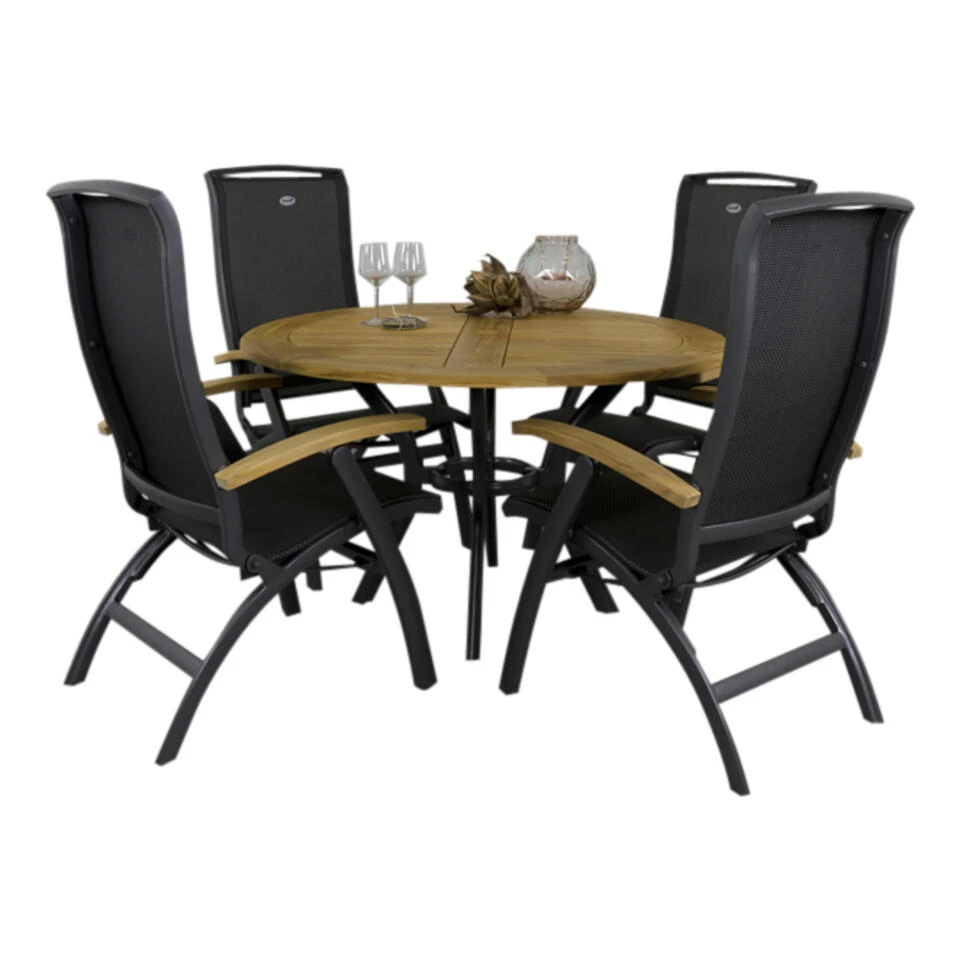 De ronde tuinset van het bekende merk Hartman is samengesteld uit de beste materialen voor jou!ย De tuinset bestaat uit de ronde tuintafel South Wales 120 cm. doorsnede en 4 keer de verstelbare tuinstoel Da Vinci. De ronde tuinset maakt je tuin erg gezellig. Dit komt omdat je iedereen aan de tafel aan kunt kijken. Kortom de ideaale tuinset voor uw terras.ย