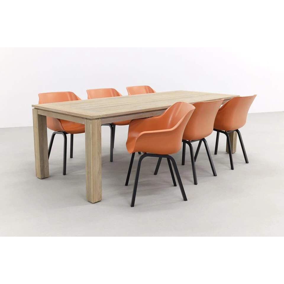 De Hartman Sophie Element/Rome tuinset heeft een robuuste uitstraling en is dan ook een echte eyecatcher in je tuin. Aan deze tuinset geniet je van een gezellige barbecue met vrienden of familie. De ruime tuintafel met zijn afmetingen van 240 x 100 cm. biedt plaats aan 6 personen. Je kan eventueel nog 2 extra stoelen aanschuiven aan de kopse kanten van de houten tuintafel, zodat je met 8 personen kunt dineren.