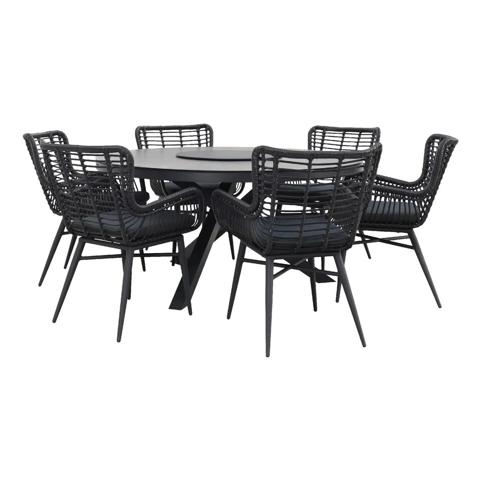Ronde tuinset met Jasmine wicker tuinstoel antraciet en Perth tuintafel